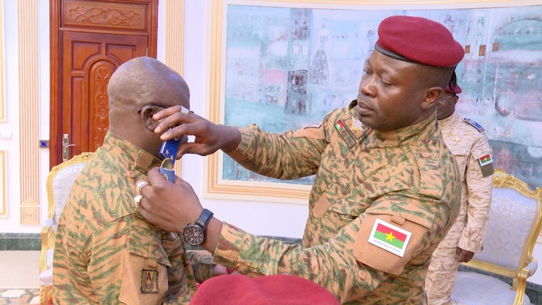 Africa-Press – Burkina Faso. Le Président du Faso, le Lieutenant-colonel Paul-Henri Sandaogo DAMIBA, a procédé au port d’épaulettes au nouveau Général de Brigade, Vinta Somé, ce vendredi en début de soirée.