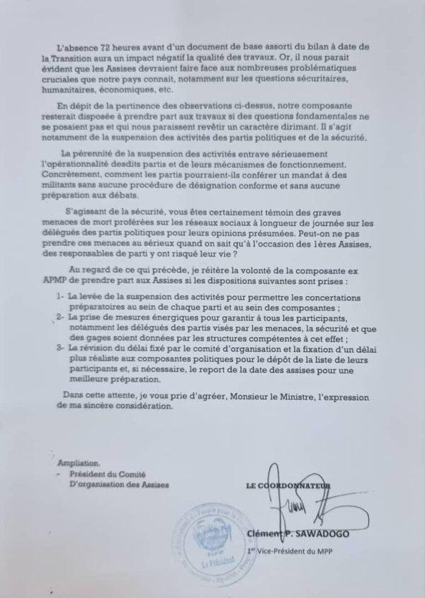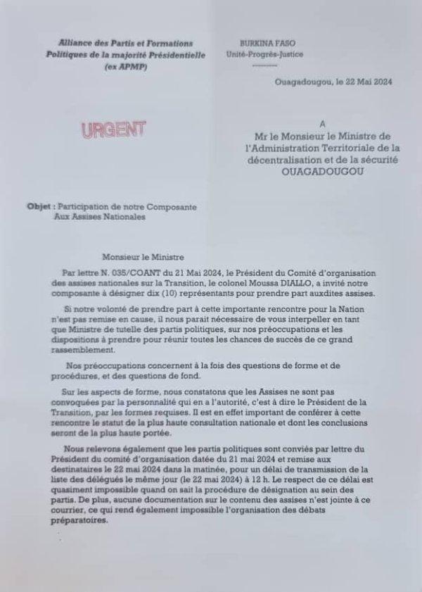 Africa-Press – Burkina Faso. L’ex Alliance des partis et formations politiques de la majorité présidentielle (APMP) a exprimé ses préoccupations concernant l’organisation des assises nationales sur la Transition du MPSR II.