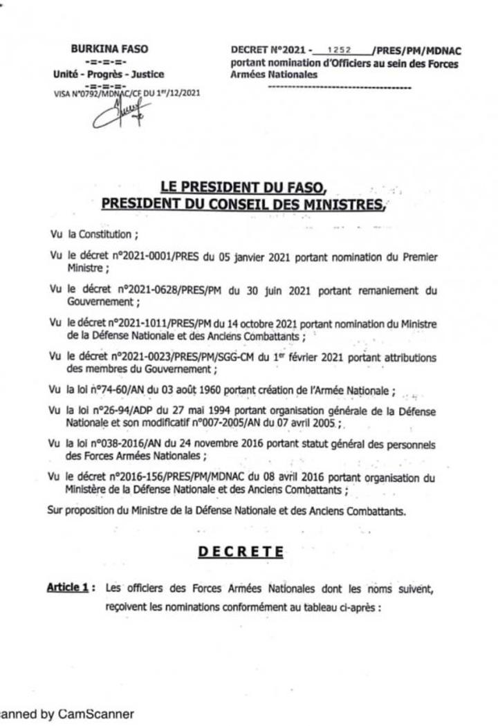 Africa-Press – Burkina Faso. Par un décret signé du vendredi, 3 décembre 2021, le président Roch Kaboré a fait des nominations au sein des Forces armées nationales. Le lundi 29 novembre 2021, le même mouvement s’est observé à travers des nominations dans plusieurs segments de la gendarmerie nationale.
