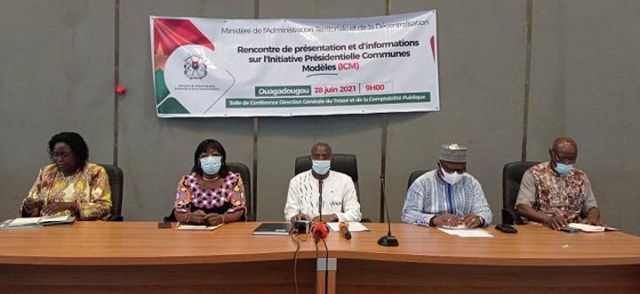 Africa-Press – Burkina Faso. Dans le cadre de la mise en œuvre de l’Initiative présidentielle « Communes modèles » (ICM), le ministère de l’Administration territoriale et de la Décentralisation a initié, le lundi 28 juin 2021, une session de présentation et d’information au profit des acteurs des collectivités territoriales. Le but était d’informer les participants des objectifs de l’ICM, susciter des commentaires en vue d’obtenir leur adhésion pour sa mise en œuvre.