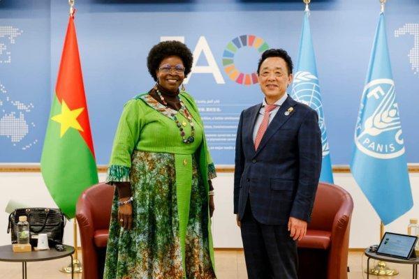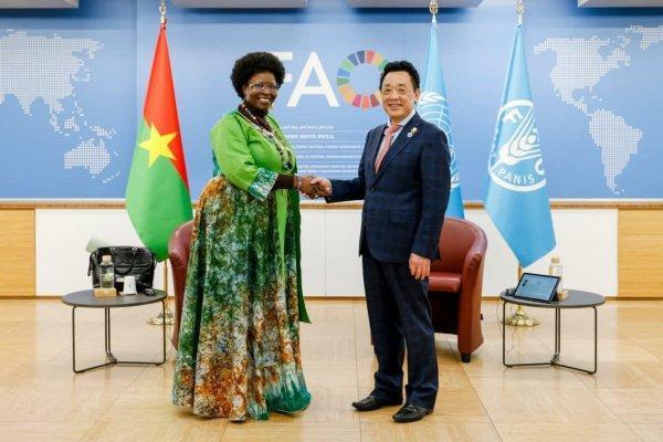 Africa-Press – Burkina Faso. En audience à Rome le 13 mars 2026, l’Ambassadrice du Burkina Faso auprès des agences onusiennes, Cyrille Ganou Badolo, a échangé avec le Directeur général de la FAO, Dr Qu Dongyu, sur plusieurs programmes clés liés à la sécurité alimentaire, à la santé animale et à la transformation du secteur agropastoral, tout en lui transmettant une invitation officielle à visiter le Burkina Faso.