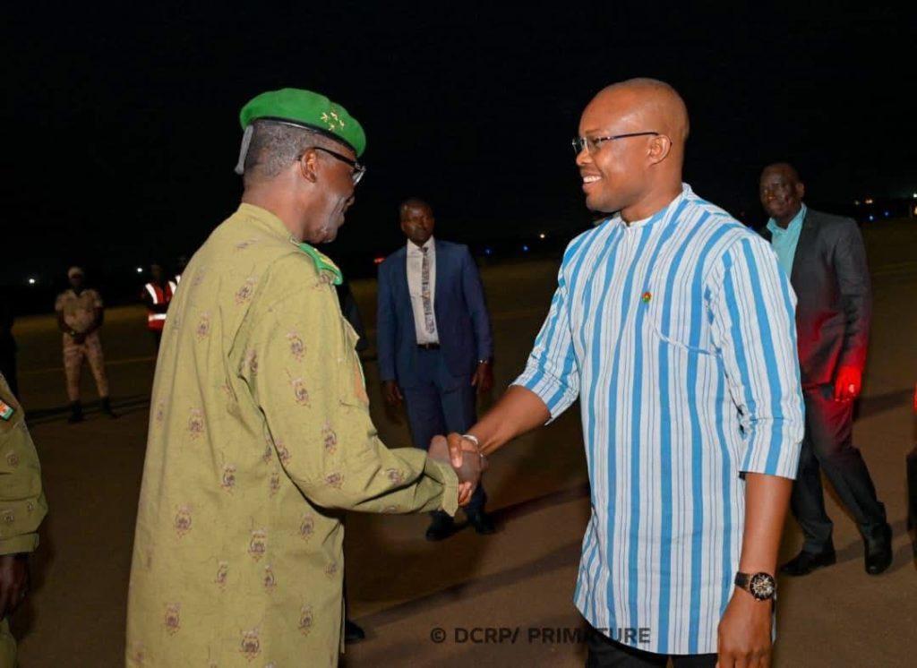 Africa-Press – Burkina Faso. Le Premier ministre, Rimtalba Jean Emmanuel Ouédraogo, est arrivé ce jeudi soir à Niamey. Il a été accueilli à l’aéroport international Diori Hamani par le ministre d’État nigérien, ministre de la Défense nationale, le Général Salifou Mody.