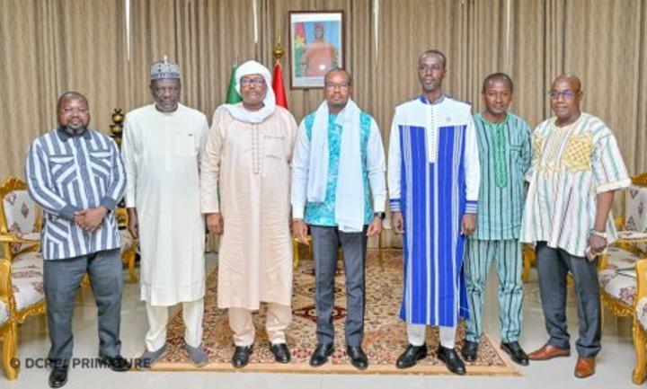 Africa-Press – Burkina Faso. Le Premier ministre burkinabè, Rimtalba Jean Emmanuel Ouédraogo, a reçu en audience le président de l’Observatoire national de la communication du Niger, Ibrahim Manzo Diallo, ce lundi 20 avril 2026 à Ouagadougou. L’objectif est d’échanger sur les défis de la communication dans l’espace de la Confédération de l’Alliance des États du Sahel (AES).