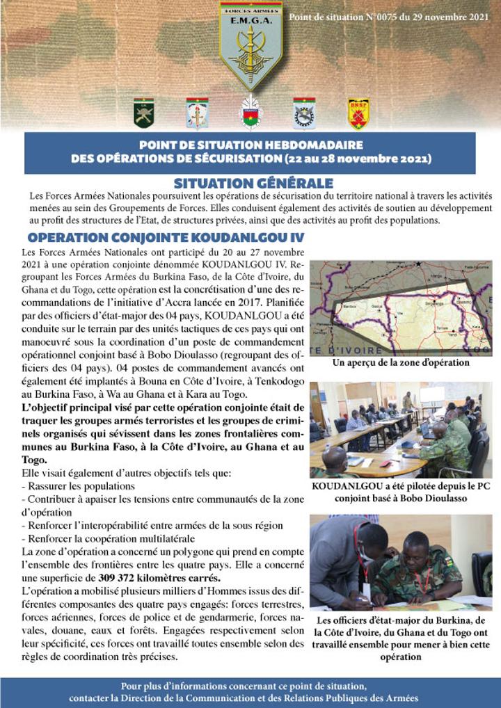 L’opération « Koudanlgou IV », dont les réalisations sont salutaires, a couvert une superficie de 309 372 kilomètres carrés et a mobilisé des milliers de militaires issus des armées des quatre pays. Durant la période de l’opération, le personnel médical militaire a aussi apporté son aide aux populations.
