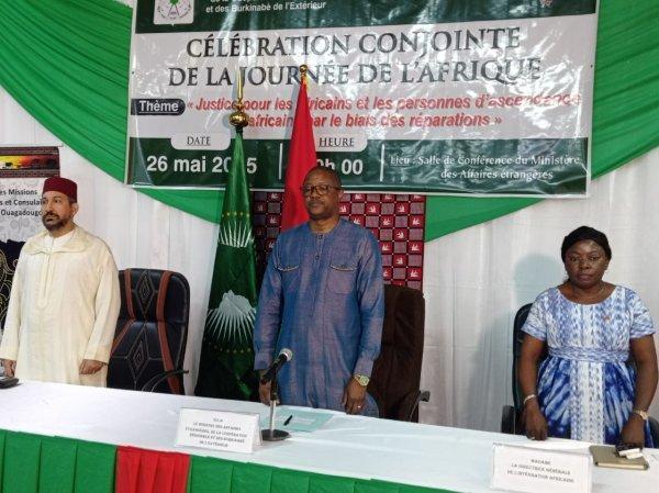 Africa-Press – Burkina Faso. Célébrée habituellement par le groupe des ambassadeurs africains accrédités à Ouagadougou, la journée de l’Afrique 2025 a lieu en différé ce lundi 26 mai 2025 et conjointement avec le ministère des Affaires étrangères, de la coopération régionale et des Burkinabè de l’extérieur. La cérémonie d’ouverture a été présidée par Karamoko Jean-Marie Traoré, ministre en charge des Affaires étrangères du Burkina Faso, et par Youssef Slaoui, ambassadeur du royaume du Maroc au Burkina Faso, doyen du groupe des ambassadeurs africains accrédités au Burkina Faso.
