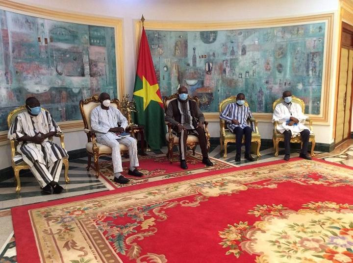 Africa-Press – Burkina Faso. Une délégation d’organisations de la société civile, avec à sa tête le président de l’Organisation pour le renforcement des capacités de développement (ORCADE), Jonas Hien, a été reçue en audience ce lundi 12 avril 2021 par le chef de l’Etat, Roch Kaboré. Plusieurs questions ont été abordées avec le président du Faso, notamment l’introduction du vaccin contre le Covid-19 au Burkina, la sécurité et la réconciliation nationale.