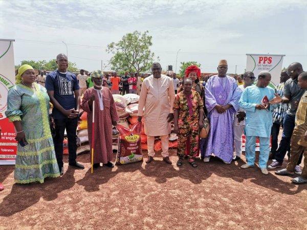 La délégation du PPS a fait don de 40 tonnes de riz et de bœufs à ces déplacés qui ont, selon des notables, fui le 3 juillet 2022 à la suite de l’attaque de leur bourgade, Bourasso.