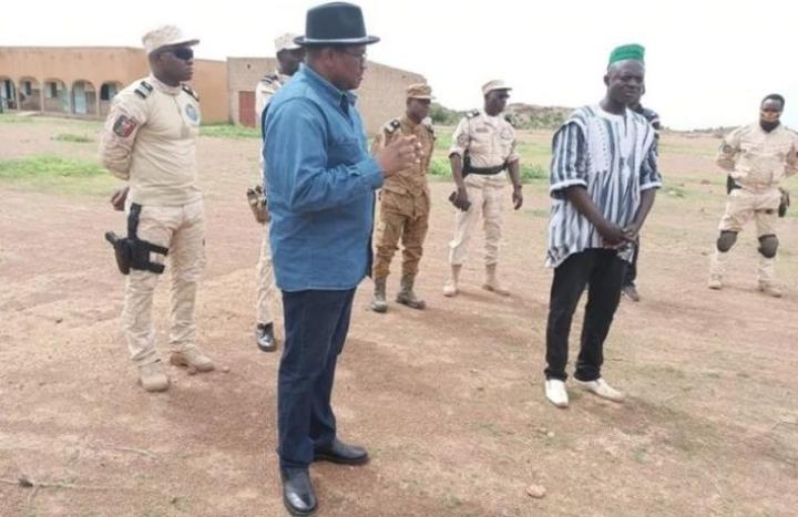 Il était accompagné durant sa visite du Directeur de la logistique de la Gendarmerie Nationale, le colonel Dolean Minoungou, du colonel KONDE Nanwê, commandant de la première région de Gendarmerie Nationale et du lieutenant-colonel EVRAR Somda, le Commandant de l’Unité Spéciale d’Intervention de la Gendarmerie Nationale. Était également du voyage, une équipe d’une société de téléphonie mobile devant rétablir le réseau dans la localité.