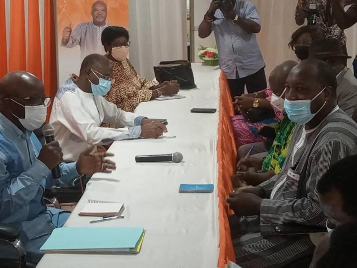 Africa-Press – Burkina Faso. Une délégation de la direction politique de l’Union pour le progrès et le changement (UPC) conduite par son président, Zéphirin Diabré, a effectué une « visite de courtoisie et de travail » auprès du parti au pouvoir, le Mouvement du peuple pour le progrès (MPP), avec à sa tête, son président Simon Compaoré. Ce tête-à-tête a eu lieu dans la soirée de ce mardi 16 mars 2021 au siège national de campagne du MPP, sis au quartier Nonsin.