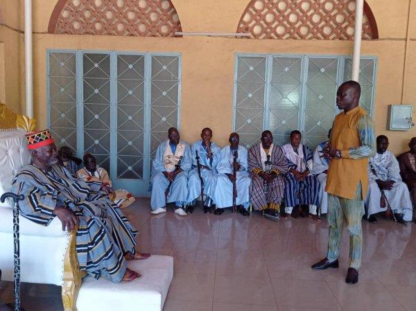 Africa-Press – Burkina Faso. Sa Majesté le Moogho Naaba Baongho a accordé dans la matinée de ce mercredi 22 octobre 2025, une audience au ministre des sports et aux Étalons cyclistes. La délégation conduite par le ministre des sports, Roland Somda dit être venue solliciter les bénédictions et les conseils du Moogho Naaba à 48 heures du début du Tour cycliste international du Faso.
