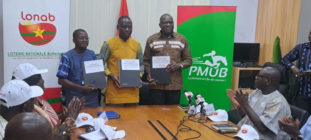 Africa-Press – Burkina Faso. À l’aube de la 36e édition du Tour cycliste international du Faso, la Loterie Nationale Burkinabè (LONAB) a réaffirmé son rôle de partenaire majeur en injectant la somme de 100 millions de francs CFA. L’engagement a été officialisé le mercredi 22 octobre 2025 par la signature d’une convention de sponsoring au Ministère de l’Économie et des Finances.
