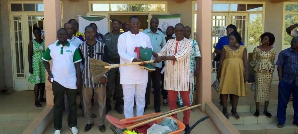 « Toute politique de développement doit tenir compte de la génération future à travers la protection de l’environnement », explique le Directeur de développement durable de la BRAKINA Souleymane Ouattara. D’où cette remise symbolique de matériels de protection et d’assainissement à la commune abritant le 60ème anniversaire de la fête de l’Indépendance du Burkina Faso. Ce don est composé de 20 cabines toilettes, 50 poubelles de 240 litres, 20 brouettes, 20 pelles, 20 balais, 20 râteaux, 20 gilets fluorescents, 20 paires de gants et 20 paires de bottes.