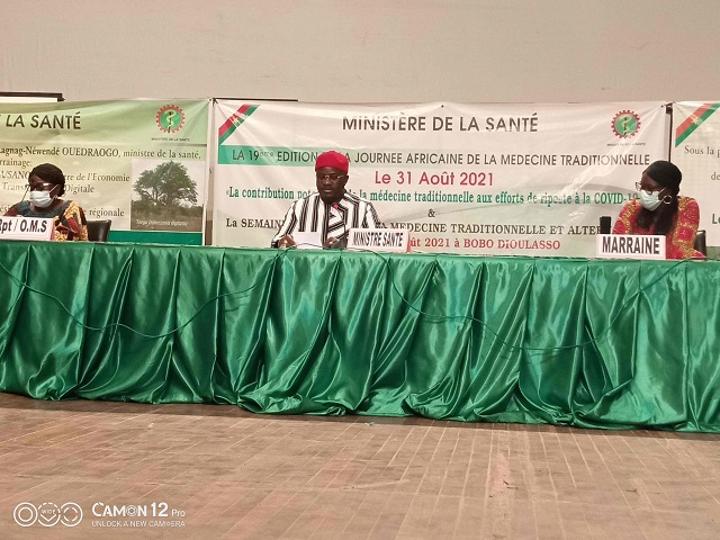 Africa-PressBurkina Faso. Le ministère de la Santé a organisé le lundi 30 août 2021 à Bobo-Dioulasso, la première édition de ‘’l’arbre à palabre’’ de la médecine traditionnelle et alternative. Elle est placée sous la présidence du Pr Charlemagne Ouédraogo, ministre de la Santé, le marrainage de Christine Kafando, présidente de l’Association espoir pour demain, et la participation de la représentante de l’OMS au Burkina Faso, Dr Diarra Nama Alimata.