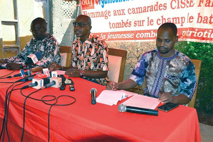 A l’occasion du 3e anniversaire de l’assassinat de ses deux responsables du Yagha, Cissé Fahadou et Balima Hama, l’Organisation démocratique de la jeunesse (ODJ), en collaboration avec le Collectif contre l’impunité et la stigmatisation des communau-tés (CISC) et le Mouvement burkinabè des droits de l’Homme et des peuples (MBDHP), a animé une conférence de presse, le mardi 31 mai 2022, à Ouagadougou. Pour le président de l’ODJ, Gabi Korbéogo, les deux « camarades » ont été lâchement assassinés, le vendredi 31 mai 2019, à l’entrée de Sebba où ils devraient prendre part à une audience avec les premières autorités de la province du Yagha, dont le haut-commissaire Adama Conseiga, pour traiter des préoccupations quotidiennes des populations. « Le peuple insurgé et résistant du Burkina, en particulier sa jeunesse patriotique et combative, n’acceptera pas la forfaiture politique », a-t-il déclaré. Par ailleurs, M. Korbéogo a invité le gouvernement à mettre tout en œuvre pour que les autopsies des corps des défunts puissent être faites. Il a exigé de même que les dispositions nécessaires pour un traitement sérieux et diligent du dossier judiciaire des deux camarades soient prises. Tous les autres dossiers d’assassinats ciblés ou de masse, commis au nom de la lutte contre le terrorisme sont aussi concernés, a-t-il ajouté.