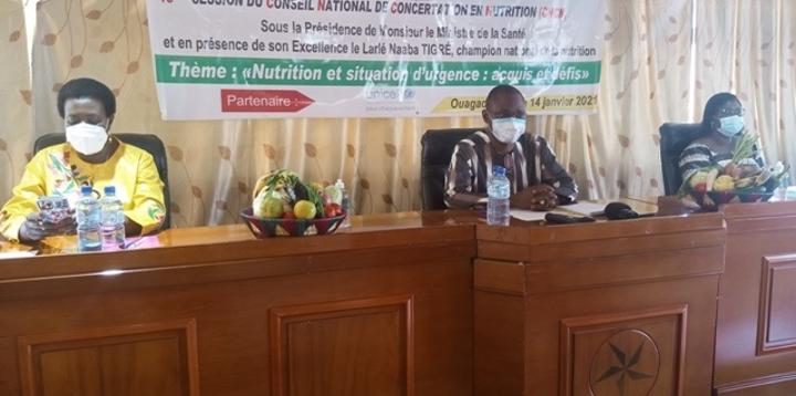 Africa-Press – Burkina Faso. Le Conseil national de concertation en nutrition a tenu sa 15e session, ce jeudi 14 janvier 2021 à Ouagadougou. La cérémonie s’est déroulée sous la présidence du secrétaire général du ministère de la Santé, Dr Wilfrid Ouédraogo, et en présence de la responsable de la nutrition à l’UNICEF, médiatrice Touré Kiburente.
