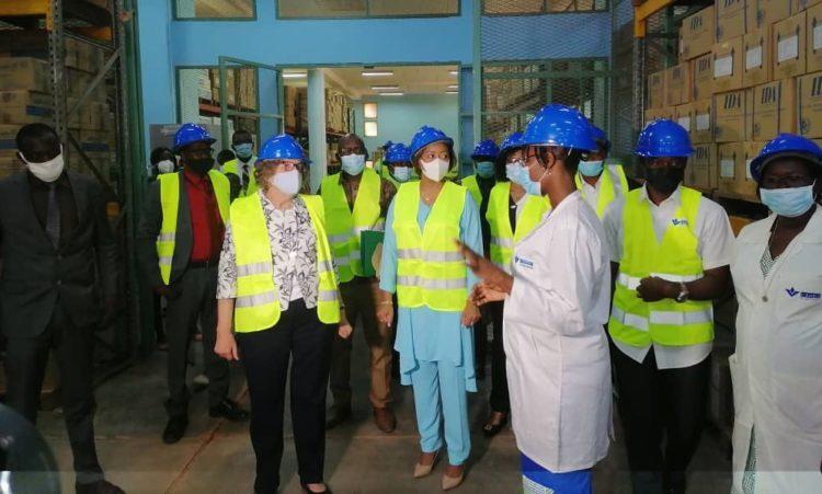 Africa-Press – Burkina Faso. Journée mondiale du paludisme, ce vendredi 23 avril 2021 à Ouagadougou, la Centrale d’Achat des Médicaments Essentiels Génériques et des Consommables Médicaux (CAMEG) a reçu la visite de l’ambassadrice des États-Unis au Burkina Faso, Sandra Clark, en compagnie du ministre en charge de la santé, Pr Charlemagne Ouédraogo.