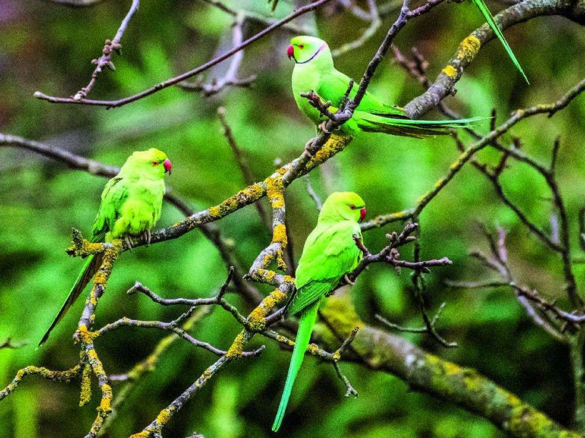 Le jardinier peut aussi laisser s’implanter des espèces envahissantes par le simple fait de les nourrir. C’est le cas des perruches à collier (Psittacula krameri). Arrivées d’Inde dans les années 1970, elles ont aménagé leurs dortoirs dans les arbres des zones urbaines d’Europe. Cette perruche se régale des bourgeons et des fruits, et fait son nid dans les cavités d’autres espèces, comme celles des chauves-souris. « Deux courants de la recherche coexistent à leur sujet. L’un, naturaliste, propose de les laisser vivre, considérant que leurs nuisances sont relatives. L’autre, plus écosystémique, prône une régulation pour maintenir l’équilibre de la biodiversité », analyse Philippe Clergeau, professeur émérite au MNHN.