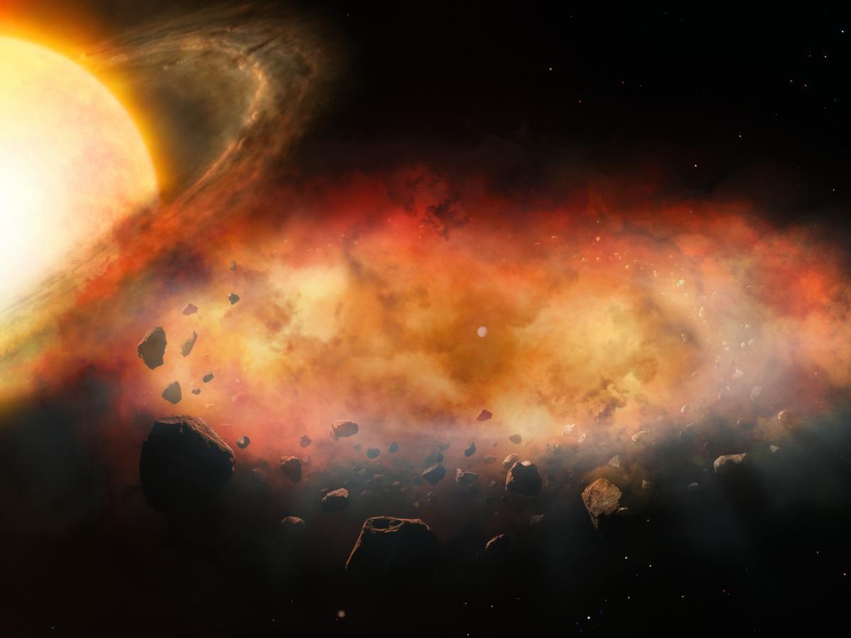 L’étoile hôte est âgée de plus de deux milliards d’années, bien au-delà de la phase où les disques protoplanétaires sont censés subsister. Un reliquat de formation initiale paraît donc peu probable. Les auteurs avancent l’hypothèse d’une collision tardive entre deux planètes dans les régions externes du système qui aurait produit une énorme quantité de débris, rapidement étalés en nuage et maintenus par la gravité de l’objet secondaire. Des données d’archives suggèrent d’ailleurs que des épisodes d’assombrissement similaires ont déjà eu lieu en 1937 et en 1981, selon un cycle d’environ 44 ans.