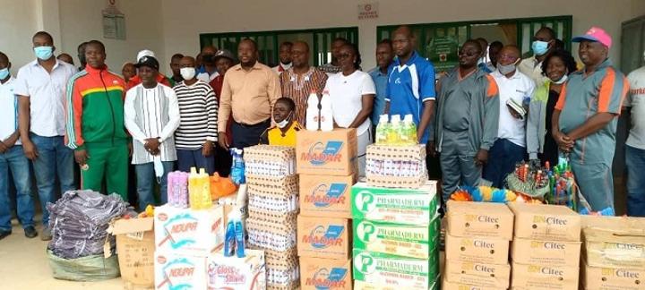 Un peu plutôt dans la matinée du samedi 17 avril 2021, la Fondation a fait un don de plusieurs lots de matériels désinfectants au Centre hospitalier régional de Gaoua. Ce lot d’une valeur de 2 500 000 FCFA a été remis aux responsables de l’hôpital en présence de plusieurs autorités dont les ministres de l’Eau et de l’Assainissement, Ousmane Nacro, et des Ressources animales et halieutiques, Modeste Yerbanga.