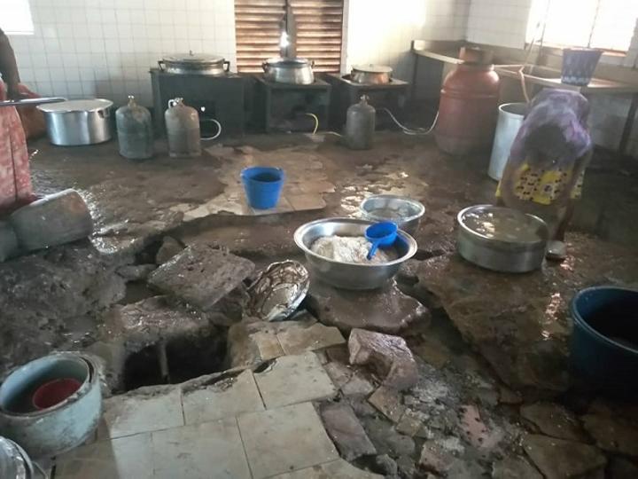 Africa-Press – Burkina Faso. L’état général de la cuisine du Centre hospitalier universitaire Souro Sanou de Bobo-Dioulasso laisse à désirer. C’est le constat fait dans la matinée de ce jeudi 25 mars 2021, au cours du sit-in du personnel de santé. A l’entrée du bâtiment, c’est un constat alarmant. Des odeurs fétides, des caniveaux à ciel ouvert, des accumulations de résidus noirs sur des surfaces qui entrent en contact direct souvent avec la nourriture, des eaux usées stagnées à l’intérieur de la cuisine, autant de réalités que vivent les cuisinières au quotidien.
