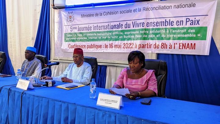 Africa-Press – Burkina Faso. Le Burkina Faso célèbre ce lundi 16 mai 2022 la 5e journée mondiale du vivre-ensemble en paix. A l’occasion, le ministère de la Cohésion sociale et de la réconciliation nationale a initié une conférence publique pour évoquer le sujet et voir comment l’implémenter au Burkina Faso.