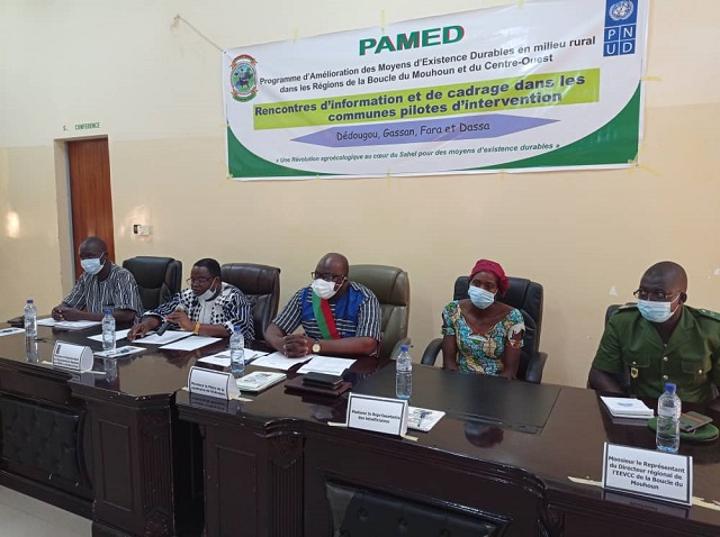 Cette rencontre marque ainsi le démarrage effectif des activités du PAMED dans la commune de Dédougou. Ce projet est élaboré par le Programme des Nations-unies pour le développement (PNUD), en collaboration avec le gouvernement du Burkina Faso. Sa mise en œuvre couvre la période de 2020 à 2024. Il entend contribuer à réduire, par des actions structurantes, la vulnérabilité croissante des populations rurales dans les zones ciblées.