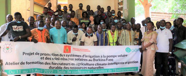 Près de 59 000 pompes d’irrigation recensées au Burkina Faso, utilisent l’essence, le gasoil ou le gaz comme source d’énergie, d’où la nécessité de trouver des solutions durables et économiques à long terme pour protéger notre environnement tout en générant des économies pour les producteurs. GGGI prévoit renforcer les capacités d’environ 1000 agriculteurs irrigants et 30 Conseils villageois de développement sur des thématiques en lien avec cette formation. Aussi, dans le cadre de la mise à échelle du projet et la vulgarisation de ces approches innovantes d’encadrement du monde rural cet atelier a été organisé.