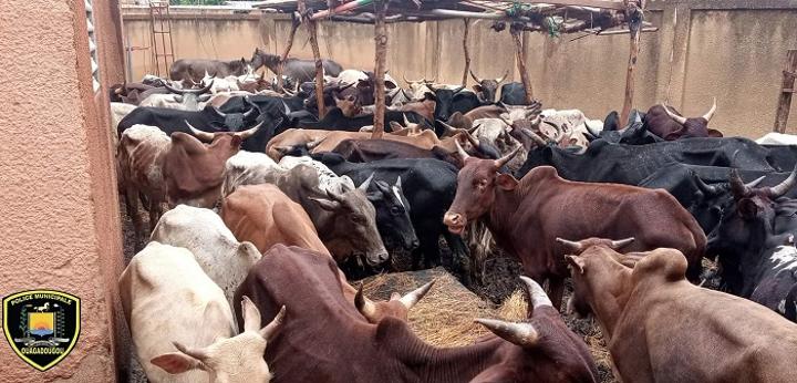 Africa-Press – Burkina Faso. Sur dénonciation citoyenne, les services de la Direction Générale de la Police Municipale de Ouagadougou ont procédé ce matin 16 juillet 2021 sous une pluie battante à la mise en fourrière de 63 bœufs en divagation.