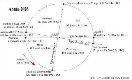 La variation de distance entre la Terre et le Soleil est une conséquence directe de la forme légèrement elliptique de l’orbite terrestre. Contrairement à une idée tenace, ce rapprochement n’explique pas les saisons. Celles-ci dépendent avant tout de l’inclinaison de l’axe de rotation de la Terre, d’environ 23,4 degrés, et de la position de la planète sur son orbite. Lorsque l’hémisphère nord est incliné vers le Soleil, l’ensoleillement y est maximal et c’est l’été. Le solstice d’été correspond au moment où la longitude apparente du Soleil atteint 90 degrés. En 2026, il aura lieu le 21 juin.