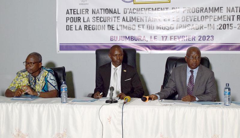 Africa-Press – Burundi. Le programme national pour la sécurité alimentaire et le développement rural pour la région de l’Imbo et du Moso (PNSADR-IM) a tenu, vendredi 17 février 2023, à Bujumbura, un atelier d’achèvement de ses activités. Selon le rapport final, ledit programme a été couronné de succès. Les bénéficiaires et l’administration locale, quant à eux, assurent prendre le relais dans la pérennisation des acquis.