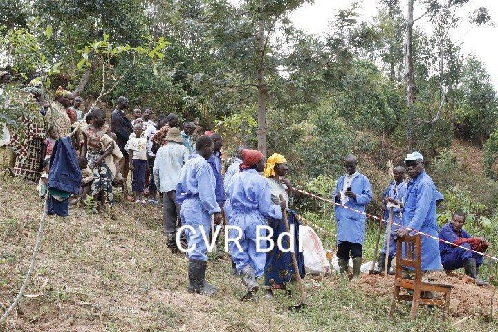 – et une exhumation d’un autre charnier dans un tranché a eu lieu en zone Muyama, colline Mabanza, sous colline Muyama, dans la propriété de M. Niyongabo Renovat.