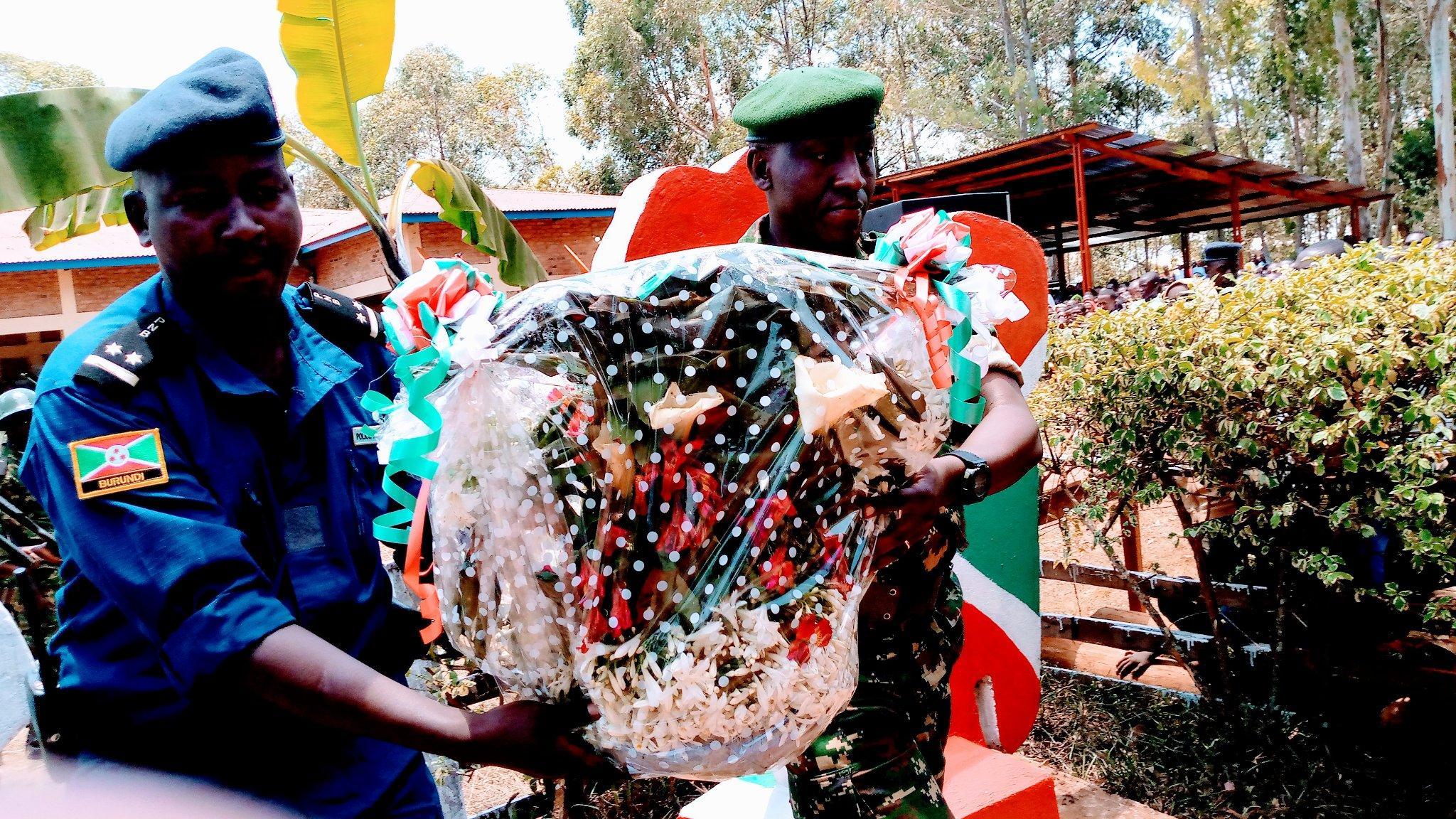 Débutant par une messe de requiem à la paroisse Gisanze . Ce jeudi, les citoyens de Muyinga commémoraient le 61ème anniversaire de l’assassinat du Muganwa Rwagasore Louis, Héros de l’Indépendance du Burundi, en présence du gouverneur et d’autres autorités locales. Déposant des gerbes de fleurs au monument du Muganwa Feu Rwagasore Louis. Clôturant cette belle journée par un geste de solidarité en distribuant une aide de haricot à 100 personnes vulnérables identifiés en commune Gashoho à raison de 5kg chacune.