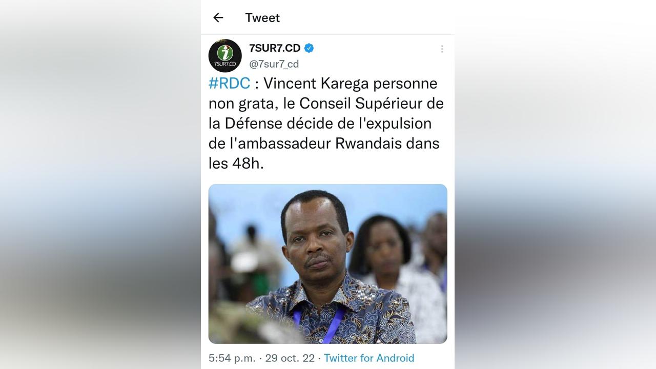 Africa-Press – Burundi. La RDC expulse M. Karega Vincent, ambassadeur du Rwanda en RDC .