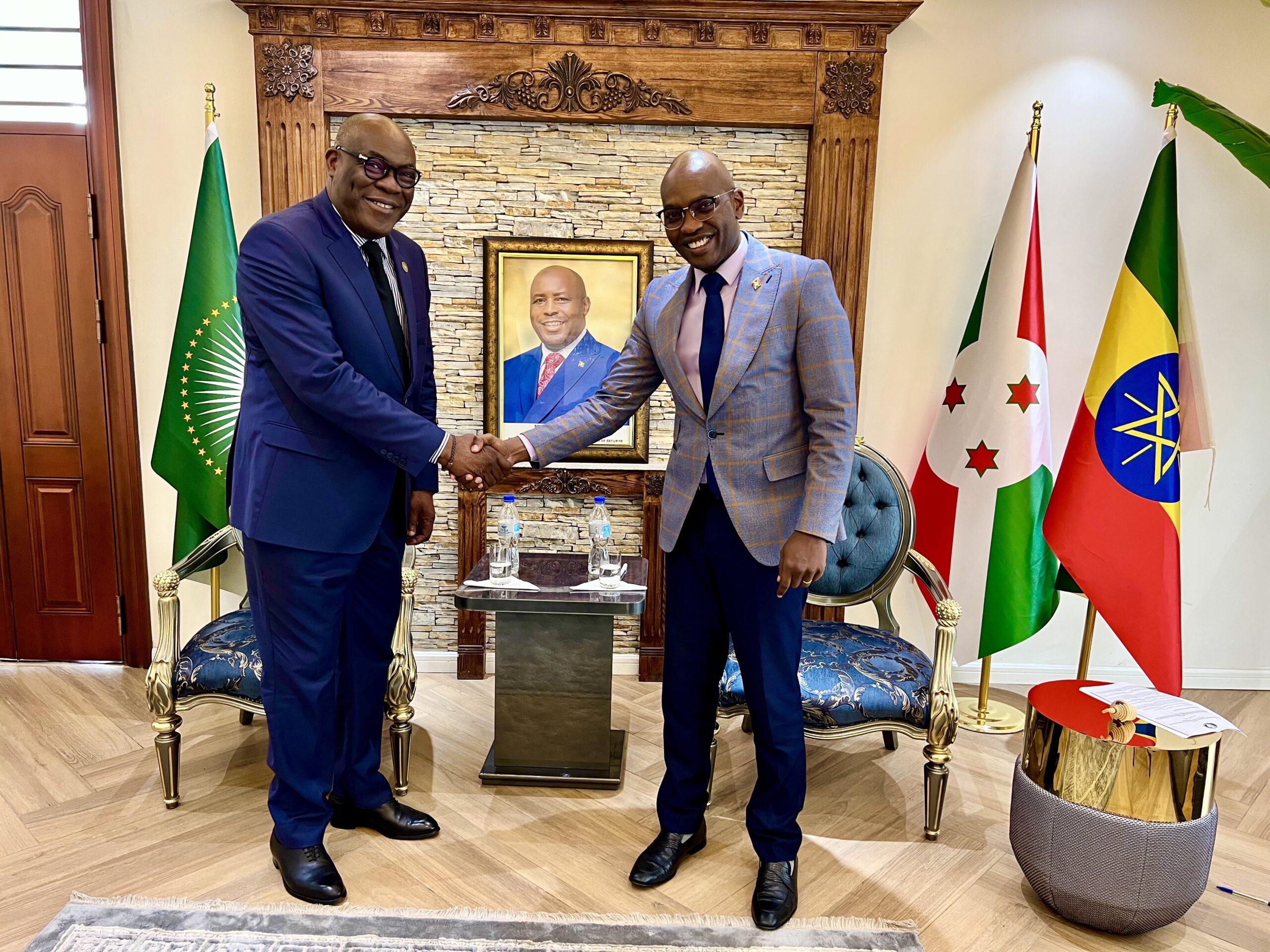 Africa-Press – Burundi. Dans le cadre de sa politique étrangère axée sur les initiatives diplomatiques, le remarquable Ambassadeur du Burundi en Éthiopie, M. Nyamitwe Willy, a chaleureusement reçu M. Oke Francis Gabriel, Représentant Permanent de la Communauté Économique des États de l’Afrique de l’Ouest (CEDEAO) auprès de l’UA, lors d’une rencontre au sein de l’ambassade. Lors de leurs échanges, la situation au Niger, marquée par un coup d’État militaire ayant renversé le régime de Mohamed Basoum, a été au cœur des discussions.