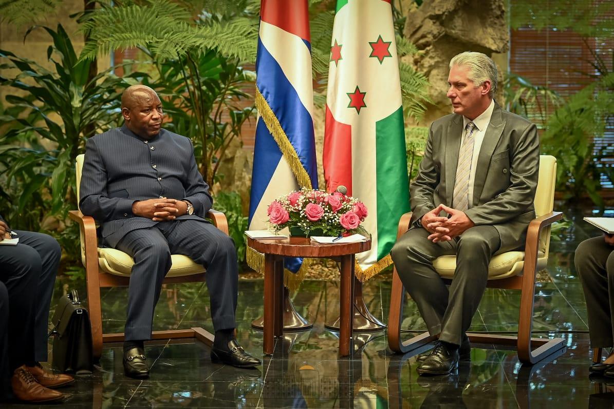 Africa-Press – Burundi. Rencontre Bilatérale : Échanges Fructueux entre les Présidents du Burundi et de Cuba. Le Président Ndayishimiye rencontre son homologue cubain, S.E. Miguel Díaz-Canel Bermúdez, pour discuter des intérêts communs et du renforcement de la coopération entre les deux pays.