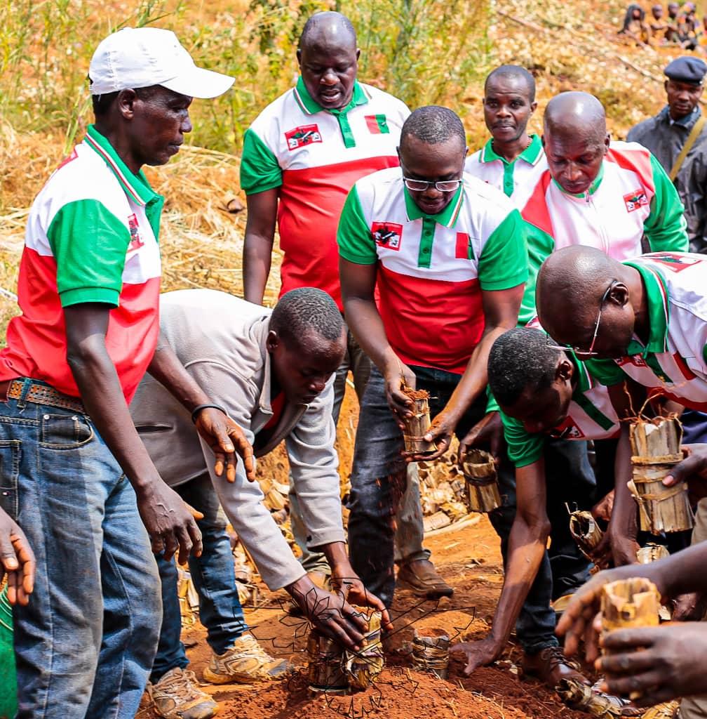 Africa-Press – Burundi. Dans le respect de la politique intérieure du Burundi, y compris celle des partis politiques nés du décret colonial belge du 25 décembre 1959, en remplacement des “imiryango“, traditionnels instruments politiques burundais, mercredi, des défilés officiels et réunion ont été organisés en présence d’autorités. Accompagné de M. Nshimirimana Eric, Chef de département de la ligue des jeunes “Imbonerakure” (jeunes militants du CNDD-FDD), Hon. Mvuyekure Lazare, Secrétaire Nationale chargé de la coordination des ligues affiliées au CNDD-FDD, a visité la Section Provinciale CNDD-FDD Muramvya pour découvrir les projets agricoles des militants du CNDD-FDD, connus sous le nom de “bagumyamabanga”. La visite a permis de constater l’engagement des militants de Muramvya dans la politique socio-économique locale notamment en cultivant des champs de blé et de pommes de terre.