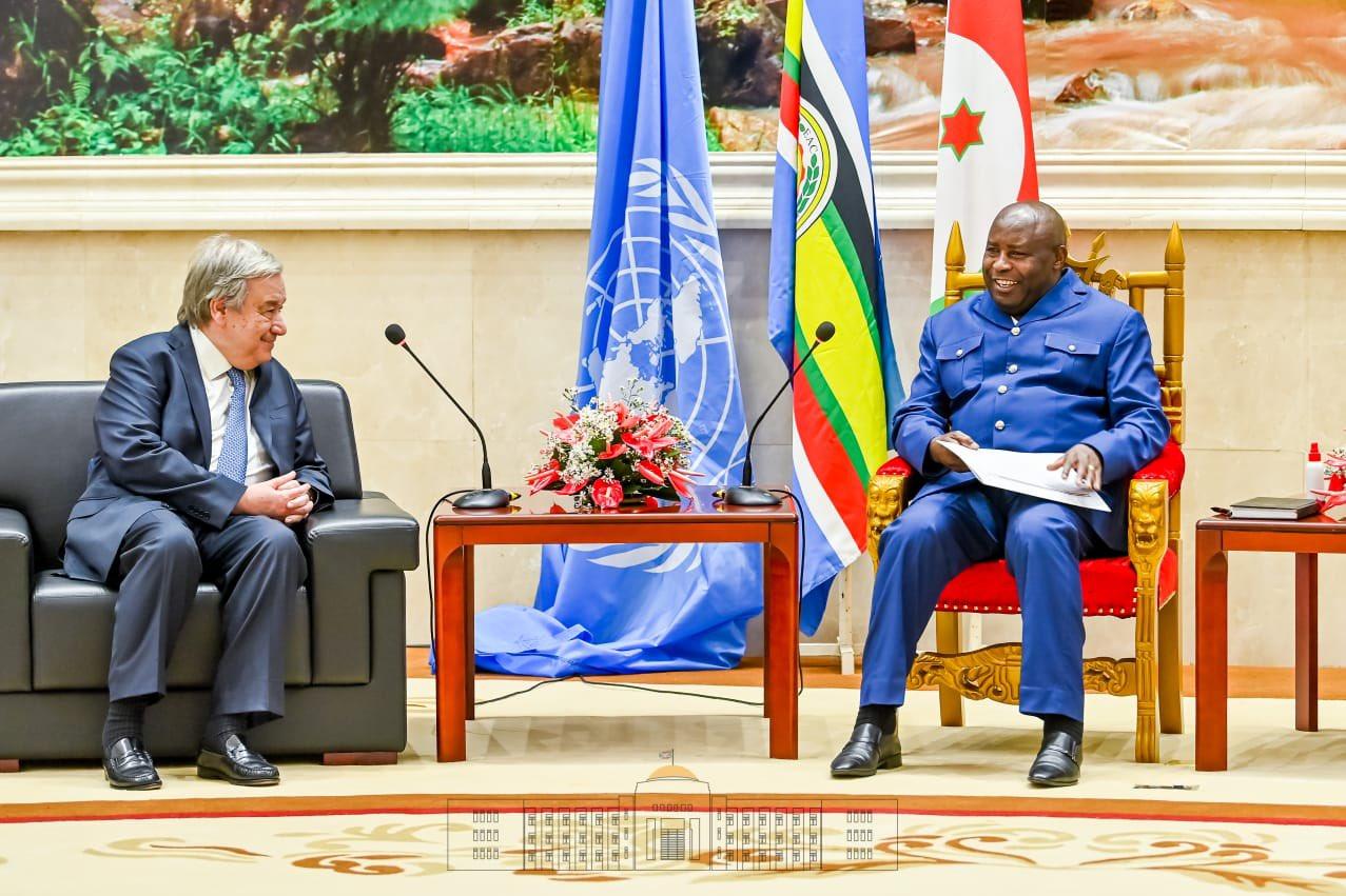 Africa-Press – Burundi. Lors d’une audience lui accordée par le Chef de l’Etat Son Excellence Evariste Ndayishimiye ce vendredi au Palais Ntare Rushatsi à la veille de la tenue du 11ème Sommet de l’Accord Cadre d’Addis-Abeba, le Secrétaire Général des Nations Unies, Antonio Guterres a exprimé une profonde admiration pour le travail accompli par les forces Burundaises en mission de maintien de la paix.