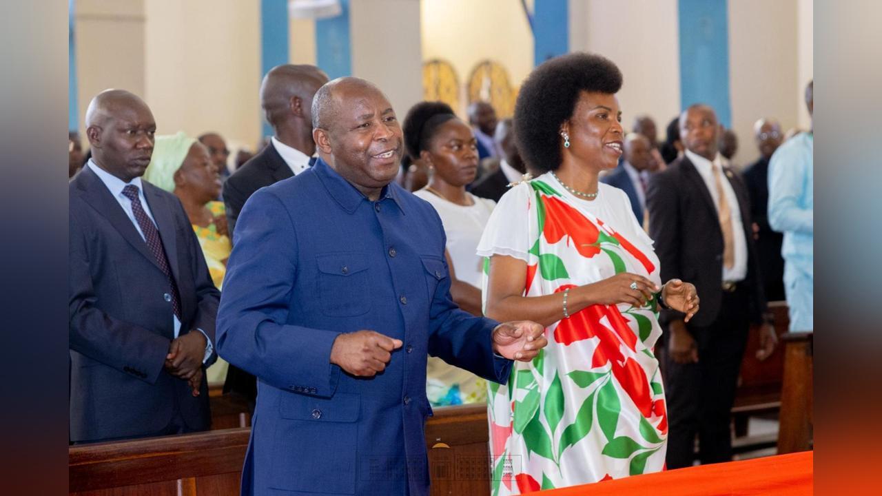 Africa-Press – Burundi. Le Président de la République, Son Excellence Evariste Ndayishimiye, accompagné de Son Épouse, Son Excellence Angeline Ndayishimiye, ainsi que d’autres hauts dignitaires du pays, a pris part ce 29 décembre à la messe d’ouverture de la prière nationale d’action de grâce, célébrée à la Cathédrale Regina Mundi avec comme objectif de remercier Dieu pour les réalisations accomplies et de Lui confier la réussite de l’année 2026.