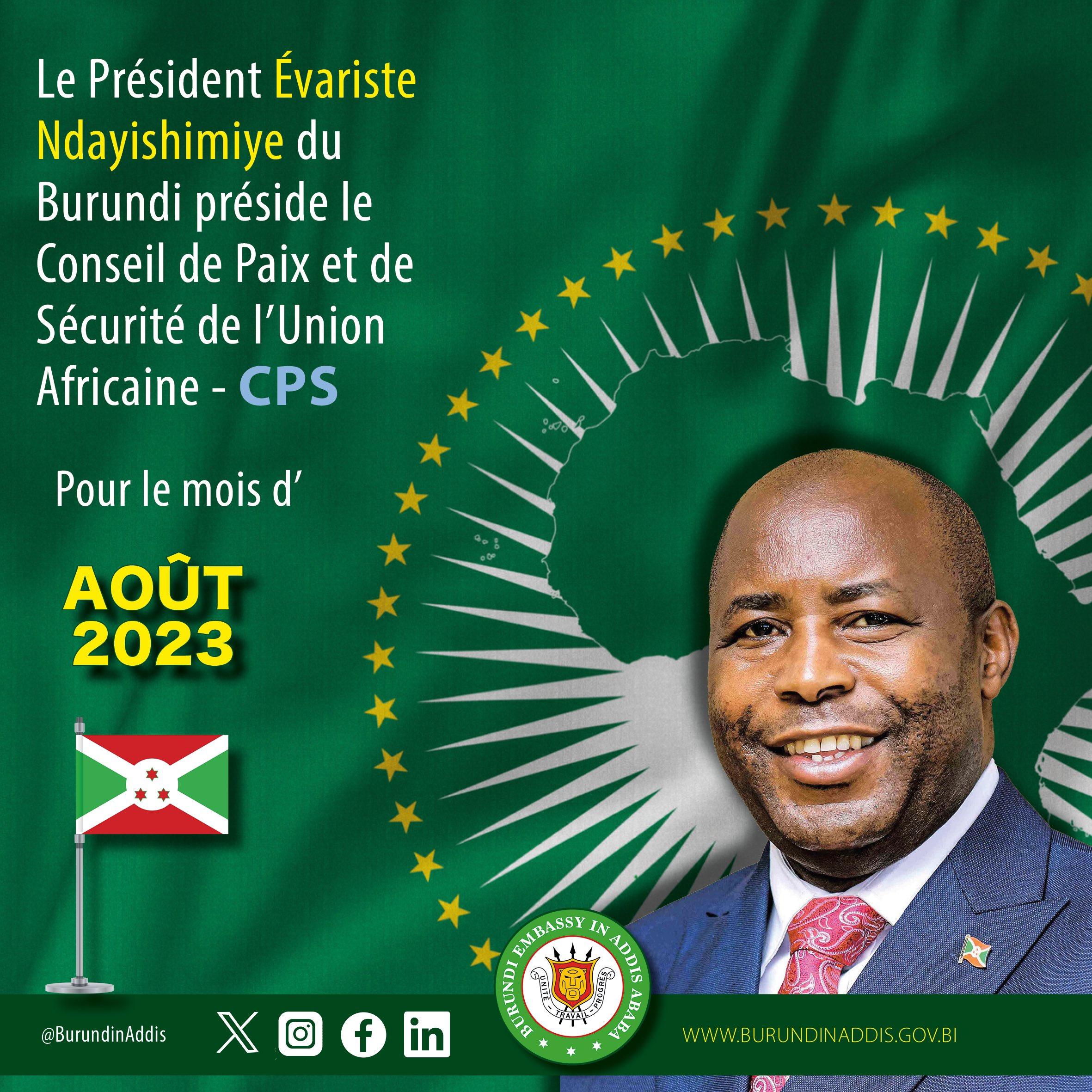Africa-Press – Burundi. S’inscrivant dans la politique étrangère du Burundi, le courageux Président du Burundi S.E. Ndayishimiye Evariste, accompagné de l’excellent Ministre burundais des Affaires étrangères, M. Shingiro Albert, a été reçu par le remarquable Ambassadeur du Burundi en Éthiopie et à l’Union Africaine (UA), M. Nyamitwe Willy. Le Président est revenu d’une visite en Russie et en Chine et a marqué cette occasion en Ethiopie pour souligner que le Burundi assumera la présidence du Conseil de Paix et de Sécurité (CPS) de l’UA au mois d’août 2023. Cette nomination permettra à S.E. Ndayishimiye Evariste de devenir le Président du CPS de l’UA pour le mois en question, dans un monde devenu multipolaire depuis 2022, au détriement de la GUAN.