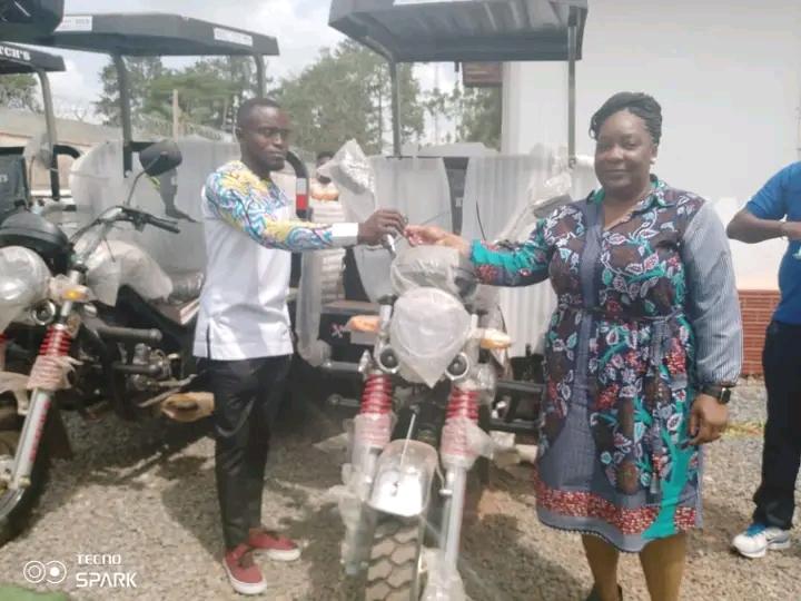 L’équipement comprenait des brouettes, du maïs, des machines de transformation du manioc et des tricycles, entre autres.