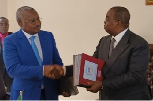 Africa-Press – Cameroun. Investir au Cameroun) – Le ministre des Finances (Minfi), Louis Paul Motaze, et le directeur général de la Caisse des dépôts et consignations (CDEC), Richard Evina Obam, ont signé, vendredi 15 décembre à Yaoundé, la convention fixant les modalités de gestion des opérations entre les deux structures. Cette signature constitue le premier acte sur la voie de la matérialisation des dernières mesures gouvernementales consacrant le lancement de la phase active du recouvrement des fonds et des valeurs de la CDEC détenus par des tiers. Par cette entente, la CDEC pourra désormais s’appuyer sur les comptables publics pour ses opérations financières dans tout le Cameroun.