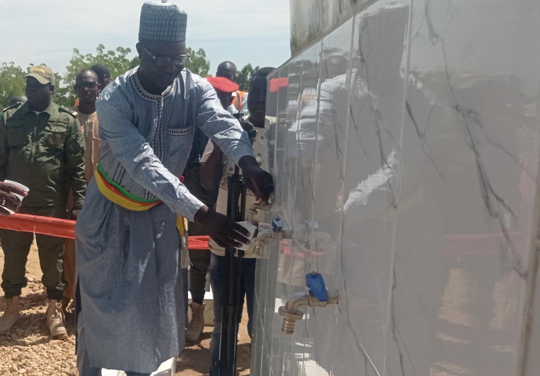 Face à cette situation le forage rétrocédé par les brasseries arrive à point nommé. L’ouvrage équipé de 12 panneaux solaires est doté d’une bâche de stockage d’une capacité de 5 000 litres d’eau potable.