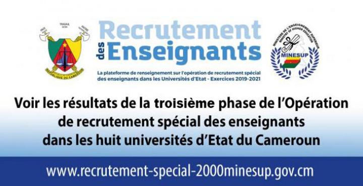 Africa-Press – Cameroun. Le gouvernement a rendu public par communiqué la liste des enseignants recrutés dans le cadre de la 3è phase de l’opération décidée par le chef de l’Etat.