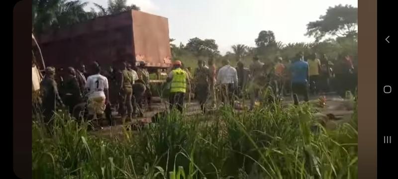 «Accident sur la nationale n°5. Un camion brassicole et un véhicule de transport en commun sont entrés en collision ce soir au lieu dit Kombe non loin du péage de Mbanga.
