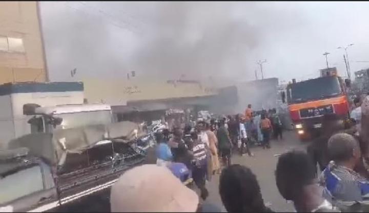 « Incendie du marché Dakar cet après-midi (après-midi du samedi le 05 novembre 2022). Les pompiers de Paul Biya venus éteindre le feu retournent à la caserne après avoir oublié l’eau ».