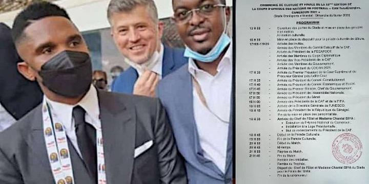 Mais pour le programme officiel des arrivés au même stade pour le compte de la finale qui va opposer l’Egypte, (tombeur du Cameroun) au Sénégal, Samuel Eto’o figure bel et bien sur la liste. Selon le planning établi, Samuel Eto’o devrait arriver de manière protocolaire entre 17 heure et 17heures 25, au même moment que les membres du comité de la CAF, du COCAN et autres.