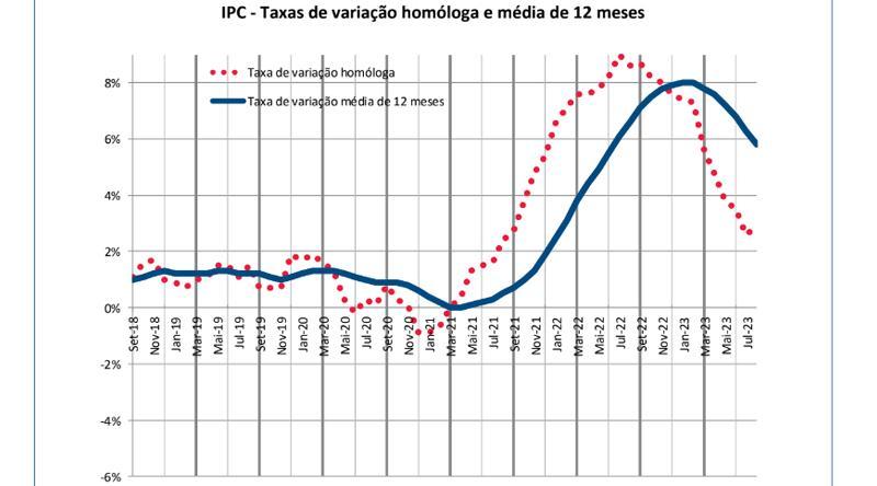 According to data provided by the National Institute of Statistics (INE), the accumulated rate of change in the CPI was 1.4 per cent, 4.6 p.p. less than in the same month of the previous year.