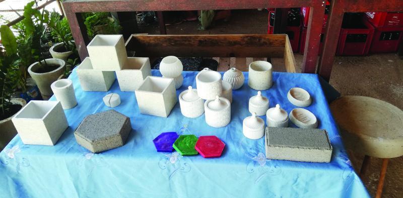 “With plastic we make key chains, coasters, etc., and glass is transformed into sand with which we make vases and also blocks for construction, pavés, among other materials”, says João Ferreira, administrator of Ekonatura and president of Community Association.