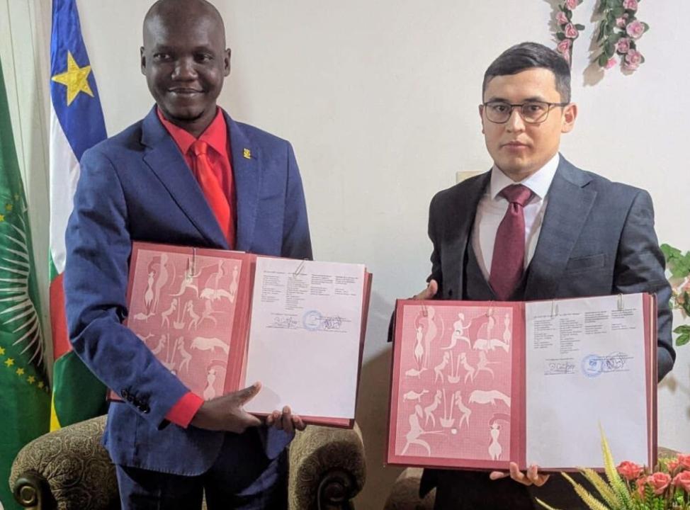 Africa-Press – CentrAfricaine. Le ministre centrafricain de la Jeunesse et des Sports, Héritier Doneng, a procédé ce jeudi à la signature d’un mémorandum d’entente avec une délégation de la zone économique spéciale de la ville d’Alabuga, en Russie. La mission russe était conduite par Konstantin Trifonov, chef de la délégation, dans le cadre d’un partenariat visant à soutenir la promotion des start-up portées par les jeunes centrafricains.