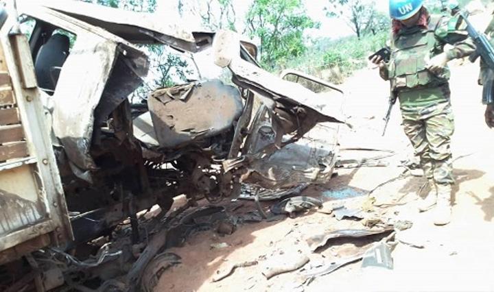 Africa-Press – CentrAfricaine. Selon les témoins, c’est un camion de transport des marchandises et de carburant en provenance de Mbaïmboum, et à destination de Bocaranga qui avait sauté sur une mine au village Touga, situé à 8 kilomètres de Ngaoundaye sur l’axe de Ndim. Le véhicule et sa cargaison ont été complètement endommagés sous le choc de l’explosion de l’engin.